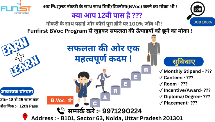जी हां, Lava Mobile में Funfirst BVoc Program के अंतर्गत ज्वाइनिंग चल रही है जिसमें पढ़ाई के साथ कमाई करने का सुनहरा मौका है। साथ में डिप्लोमा/डिग्री फ्री में।
